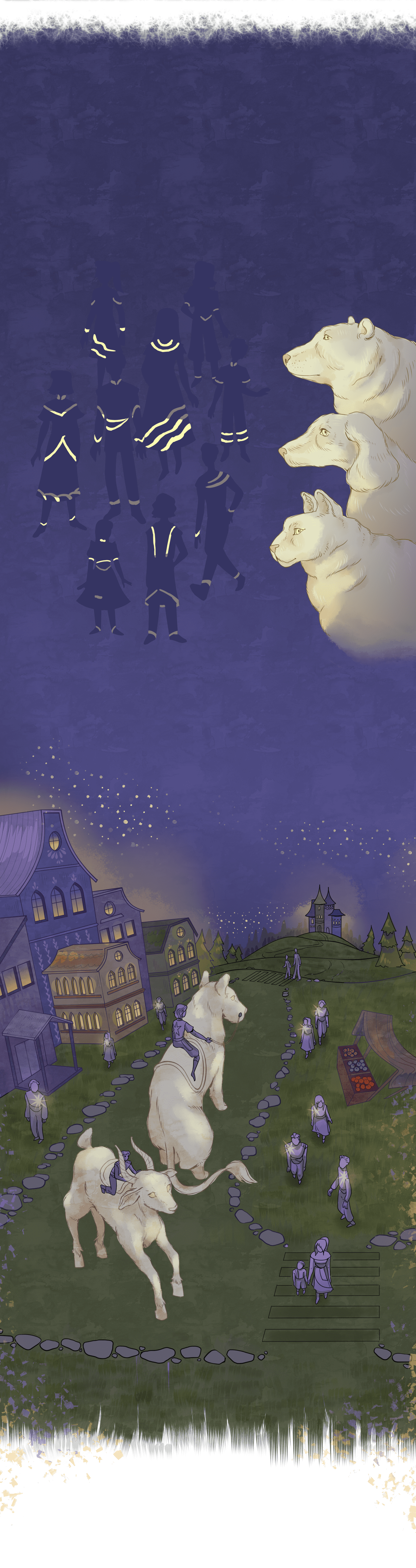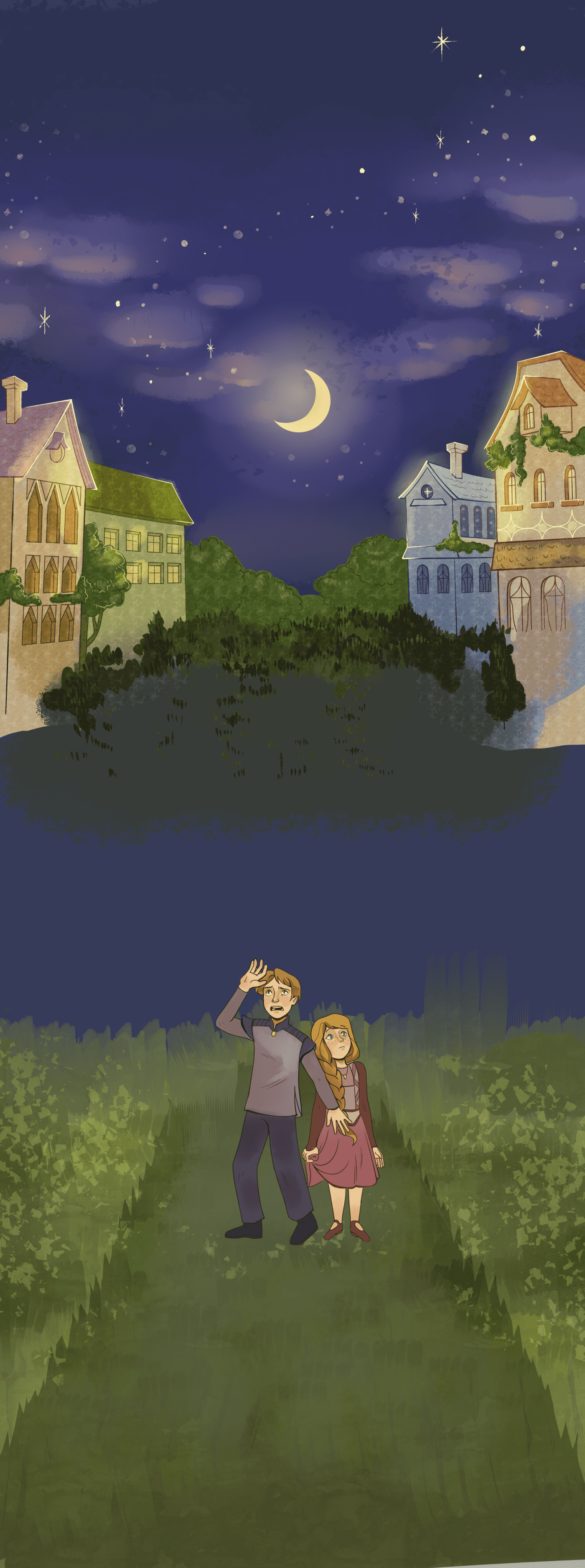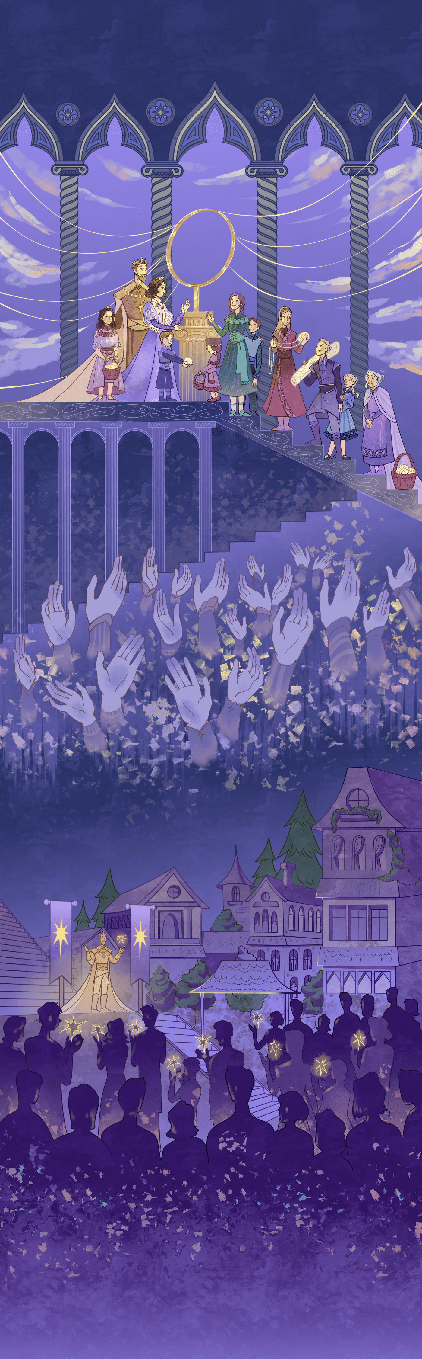 Король и Королева, видя, что их подданным нужна помощь, решили обратиться за советом к Луне и звездам, чтобы она помогла справиться с проблемой.